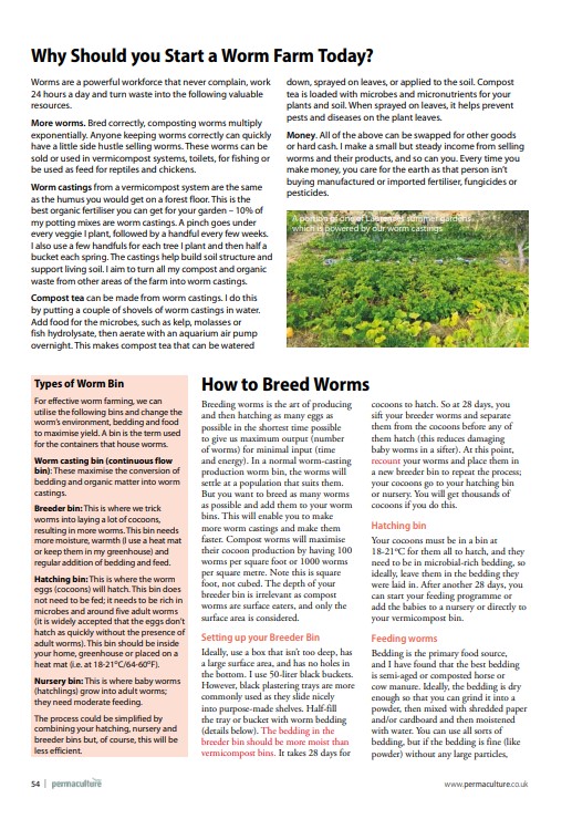 4. Money. All of the above can be swapped for other goods or hard cash. I make a small but steady income from selling worms and their products, and so can you. Every time you make money, you care for the earth as that person isn’t buying manufactured or imported fertiliser, fungicides, or pesticides.