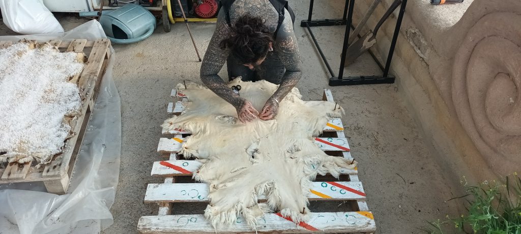 We need to attach the skin to a frame so when it dries it does not shrink. This step is made clearer on my youtube video on preparing a sheepskin rug