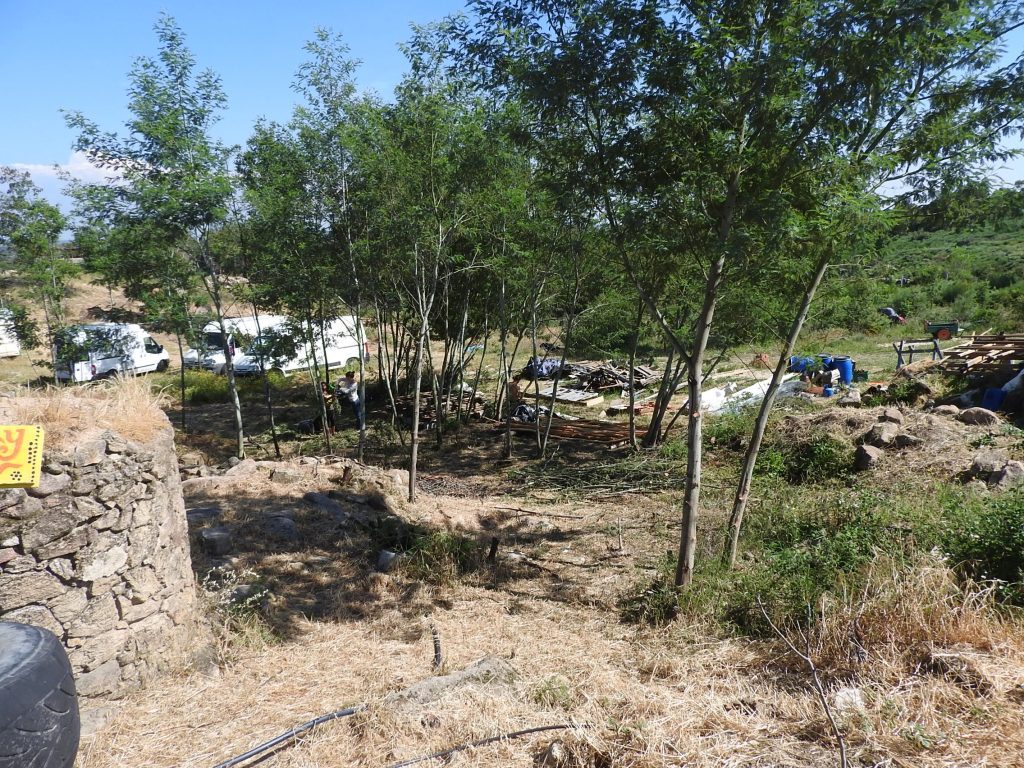By now, the mimosa trees should be large, with massive canopies, creating a shaded area. This is the stage we are currently at with a small section of our mimosa forest. Our goal is to expand this to the entire area before employing the next steps: planting future trees that thrive in shaded conditions during their early years, such as walnut, elderberry, chestnut, oak, and cork oak.
