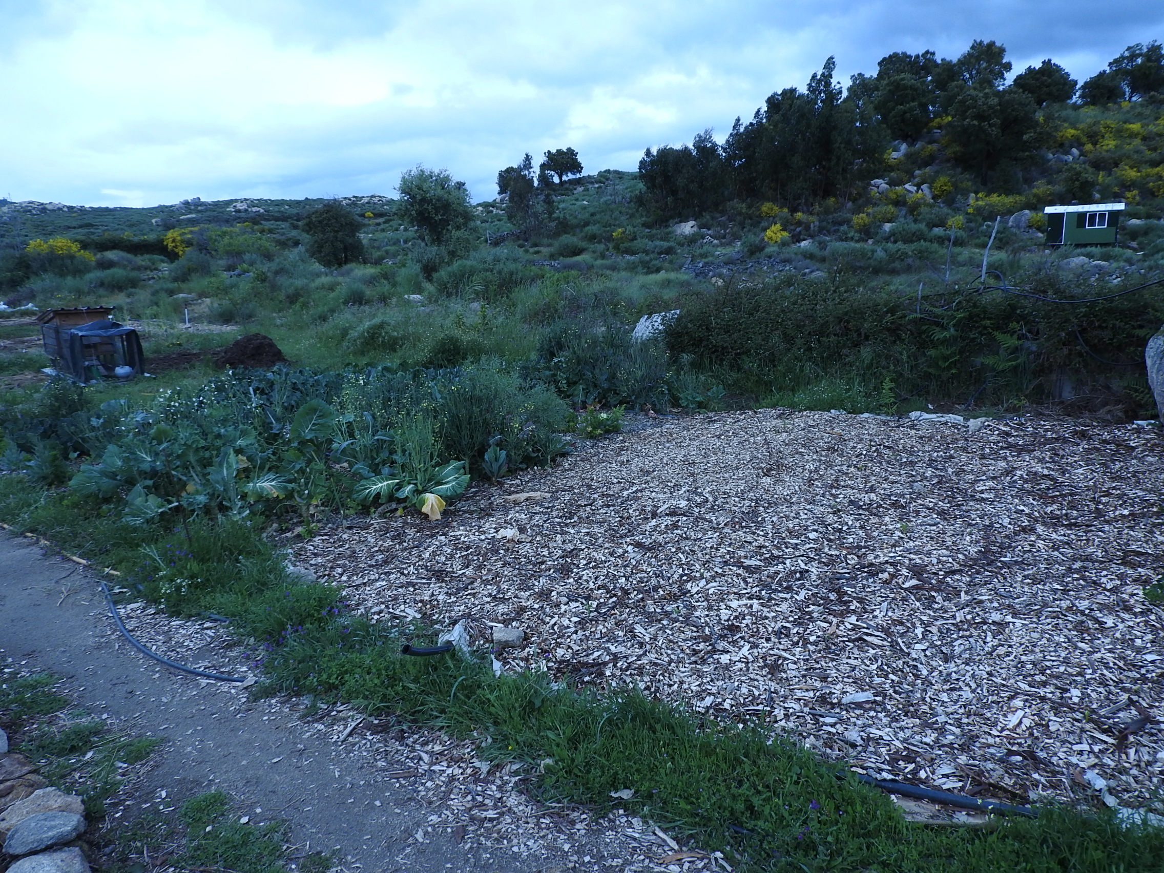 This is still a new project, we took over the land two years ago and it was left abandoned, we have grown annual vegetables until last year where we started to prepare soil and install permanent beds. Once all our beds our complete I plan to mulch all the paths with cardboard and then pine bark, however until then i am sowing cover crops and wild flowers in the paths which i chop and drop with a strimmer to further build soil.