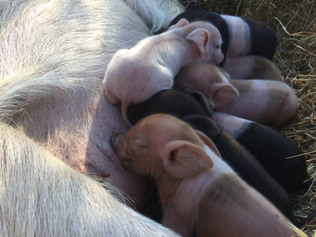 Pigs eat anything from weeds and acorns to scrap food and turn it all into excellent manure. Pigs can also dig out deep roots of weeds by placing acorns and other nuts into the ground they want to devour. They dig them up and make the ground ready to plant. We want to avoid using machines to do the work when animals can do them naturally for us.