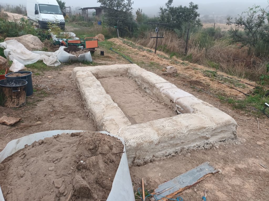 This is our least favourite method but would be suitable if you do not have timber or stone available. We include it in the courses so you can experience it. It is fast, solid and has good thermal mass but required our least preferred material, ´plastic bags. However, we have built foundations with earthbags made from reused animal feed bags.
