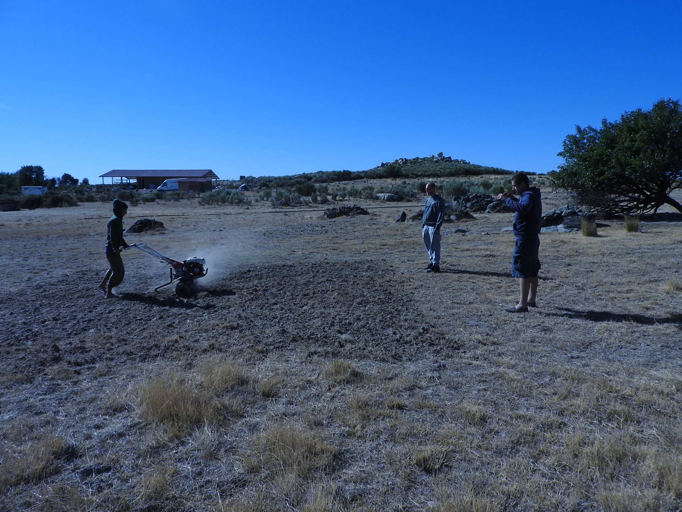 Rotavating hard ground to pant cover crops to loosen the soil, fix nitrogen and to collect seeds to feed to chickens