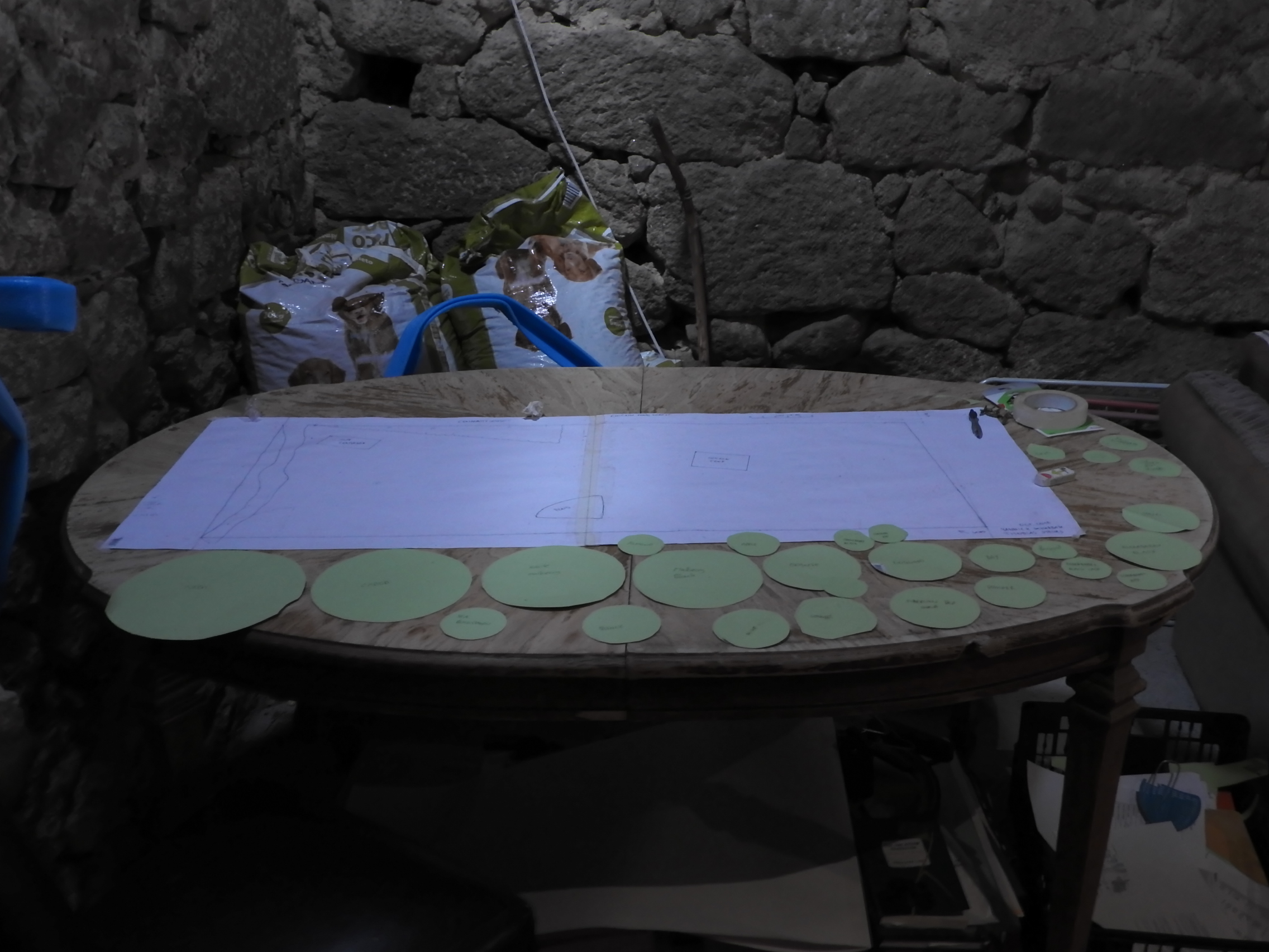 Map, drawn, trees cut out to scale and ready to design the food forest