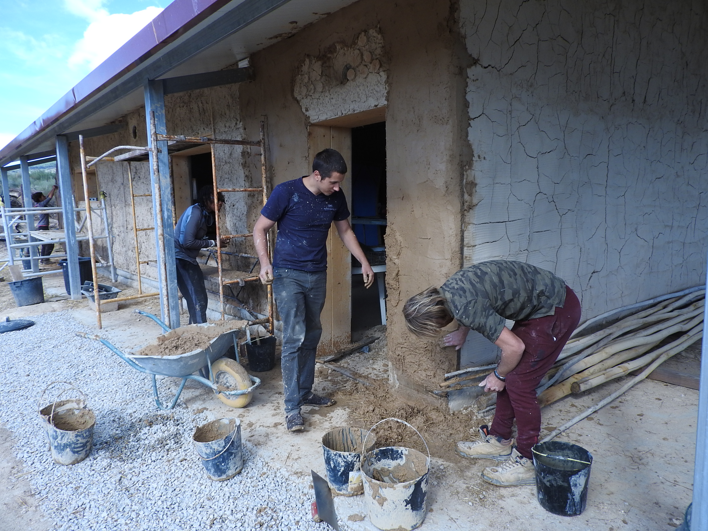 In the third week we finalize the design for the chicken food forest and started preparing the land by digging a swale, put up fencing, composting, preparing mulch and digging holes for trees.