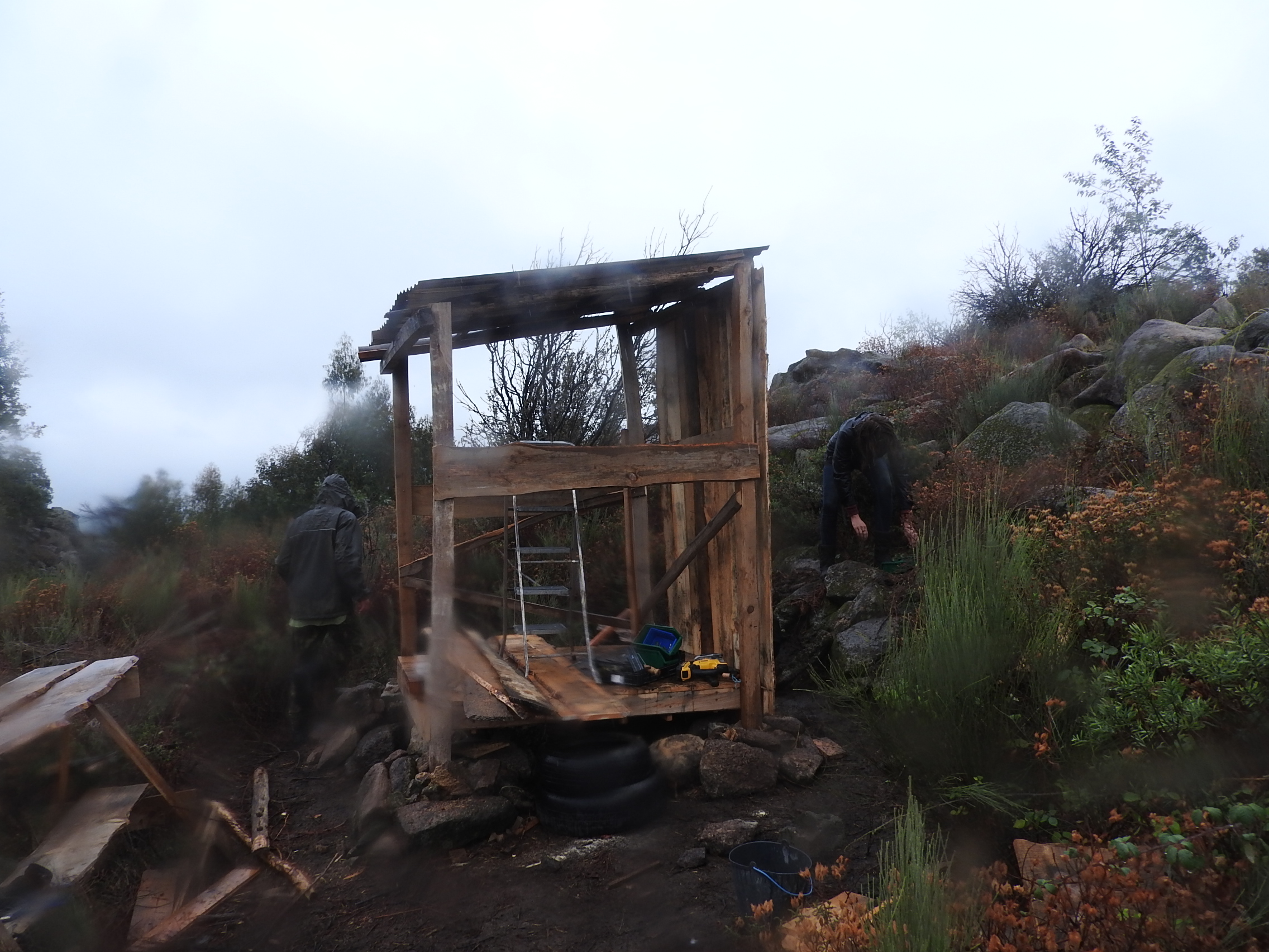 We have several grey water systems to work on but this November we completed one that we were experimenting with for the kitchen water waste. We made a grease trap, reed bed and irrigation system. The grease trap consists of a box with gravel at the bottom to above the exit hole, it is then filled with straw and composting worms. The straw catches the food scraps and the worms eat them. All the water leaves the box without many sediments but it is often nutrient rich. We made the reed bed system in a bucket full of sand and stones. The reeds use up the nutrients and the sand and stones clean the water further, we also put edible aquatic plants here. Coming out of the reed bed system we installed an irrigation system with taps, one tap for days without rain to a flood based system that waters a new bed of decorative plants. The other tap allows the water to go to an area that we dug and filled with garden waste to compost down. This hole is surrounded by a raised bed that is irrigated by the water, where we planted various shrubs and vegetables. Next year we will review this system as well as work on the grey water system for the outdoor solar shower, the indoor shower and the washing machine.