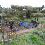Preparing a sunken bed is a lot of work upfront but the rewards can be enjoyed for many years to come. On our latest sunken bed we also built a variety of trellises to help annual plants such as tomatoes, beans and cucumbers to climb up. Many volunteers and I built this over 4 months during winter and spring to prepare for 2018’s summer planting.