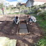 As opposed to building soil above ground with a raised bed, a sunken is a bed below ground where it is cooler and wetter. This type of bed appears to work better than a raised bed in Portugal’s hot and dry summers.