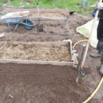 Our first attempt at a sunken bed was dug in Autumn 2017, this has 5 beds linked together with keyhole paths to increases the bed sizes. What we learnt from this first attempt was that the paths wanted to collapse in. With our newer sunken beds in the photos we did not include keyhole paths and propped up the paths with wooden forms below ground.