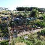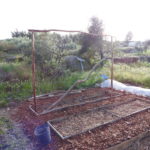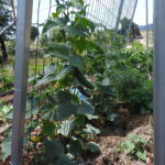 - We then built a variety of trellises with metal or wood and staked the posts 1 meter into the ground with the hope that they will be permanent. We built them all differently so we could experiment growing different vegetables up them so we know what type of trellises to build in the future when we grow these vegetables more large scale in our lower terraces where it is naturally cooler and wetter and idea for summer plantings.