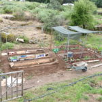 Photo gallery of our trellised sunken beds being built and with plants growing up them.